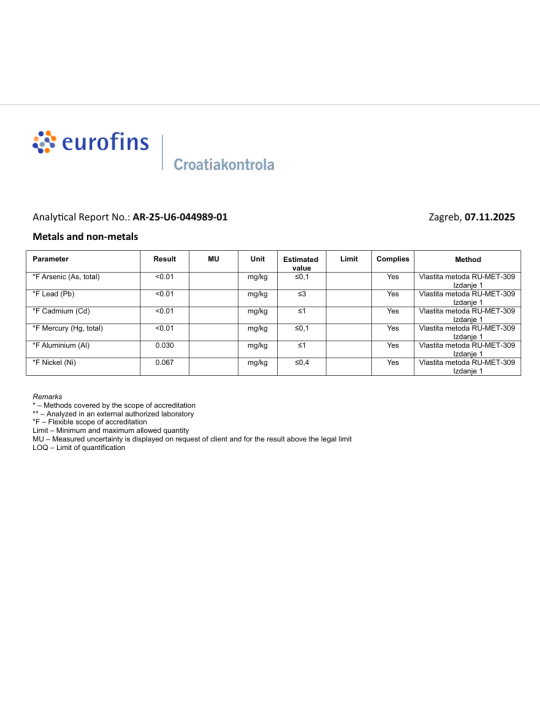 Brez umetnih dodatkov in živalskih beljakovin. Hranite zunaj dosega otrok. Shranjujte v hladnem in temnem prostoru, stran od električnih naprav. Koncentracija v ppm se lahko razlikuje +/- 5 %.